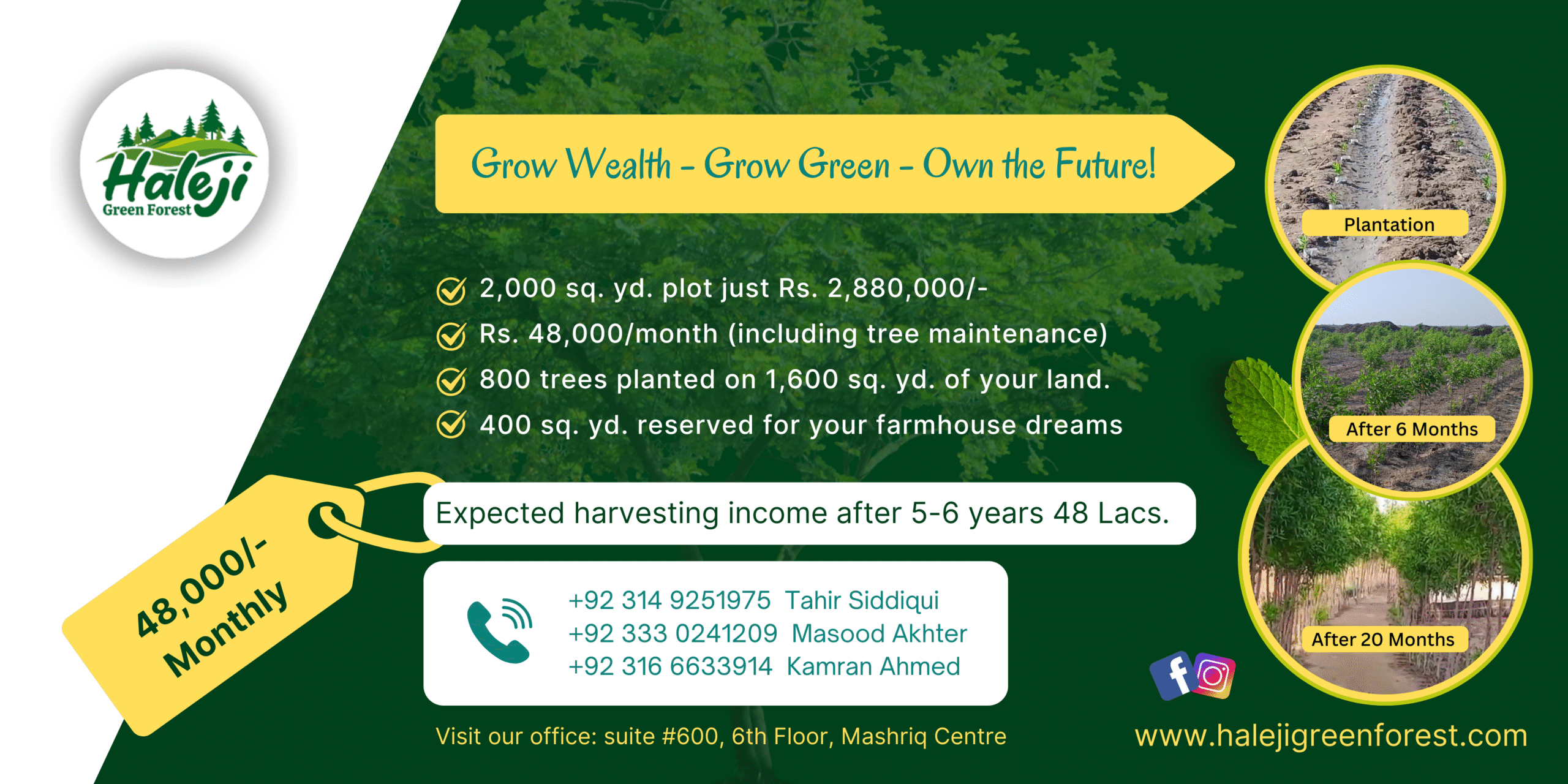 Invest in a sustainable future with Haleji Green Forest. Secure your 2,000 sq. yd. plot today and watch your investment flourish.